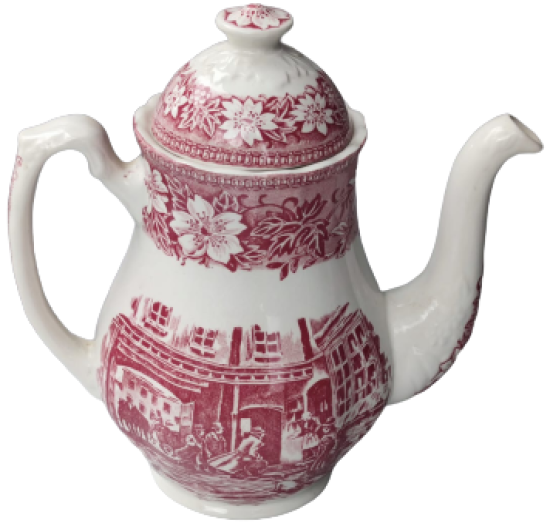 ROYAL TUDOR WARE STAFFORDSHİRE ENGLAND Vintage Staffordshire ROYAL TUDOR WARE "Koçluk Tavernaları" 1828 ingland kırmızısı ve beyaz çaydanlık.Bu parça,