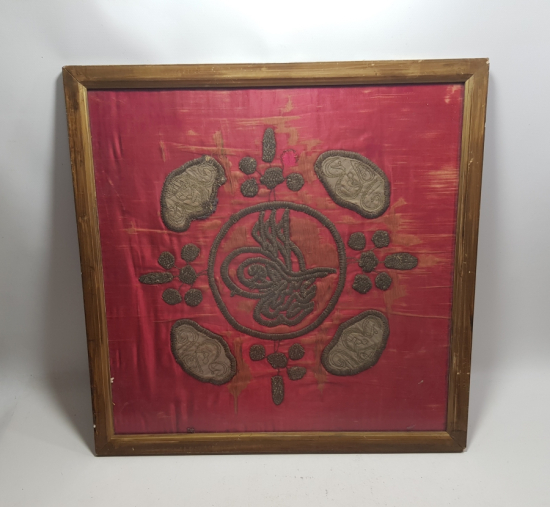 OSMANLI DÖNEMİ 2. MEÅžRUTİYETİN İLANI SONRASI YAPILMIÅž, TENEKE ÜZERİ BOYAMA, ORTA KISMINDA ÜSTTE OSMANLI DEVLET ARMASI İLE HEMEN ALTINDA YER ALAN HİLAL İÇİNDE