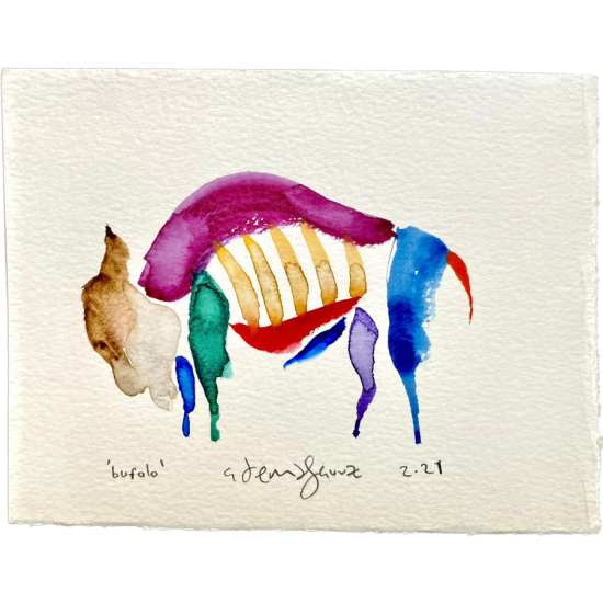 Adem Yavuz. Boğa. 12x16 cm. Kağıt üzeri suluboya. İmzalı.