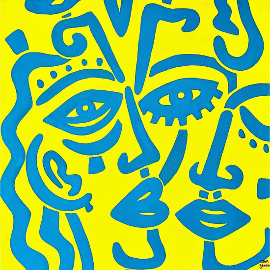 Can Genca. İç İçe Portreler serisi. 40x40 cm. Tuval üzeri akrilik boya. İmzalı.