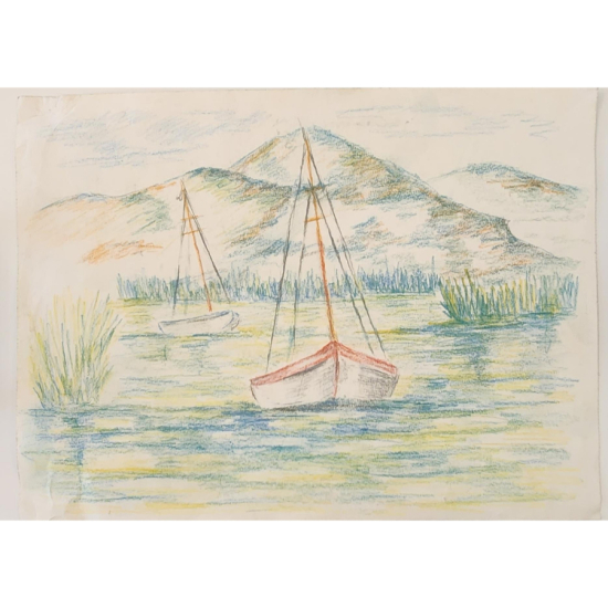 Sevim Yüce. 30x40 cm. Kağıt üzeri kuru kalem boya. İmzalı.