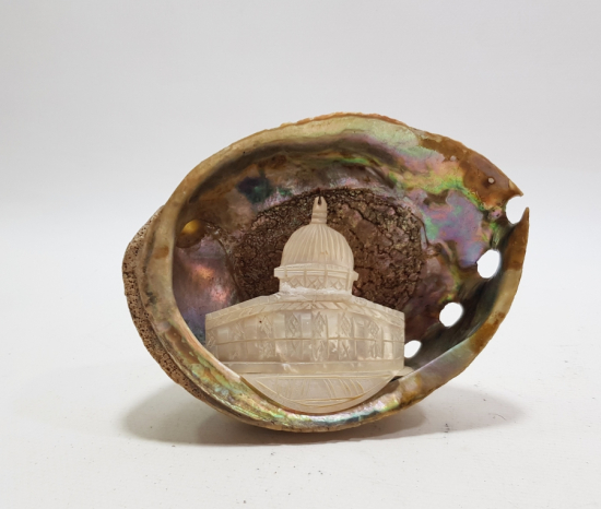 DENİZ KABUĞUNUN İÇİNE YAPILMIŞ SEDEFTEN MAMUL MESCİDİ AKSA GÖRSELLİ MASA ÜSTÜ PANOSU